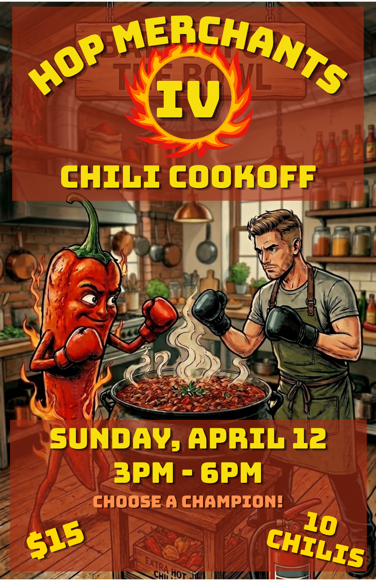 The 4th Annual Chili Cookoff is back and it promises to be hotter than ever with ten contestants battling it out for the title of Chili Champ. For just fifteen dollars, attendees can taste all ten chilis and vote for their favorite. Get ready for a fun-filled afternoon of great food and drinks at Hop Merchants Bottleshop & Taproom.
