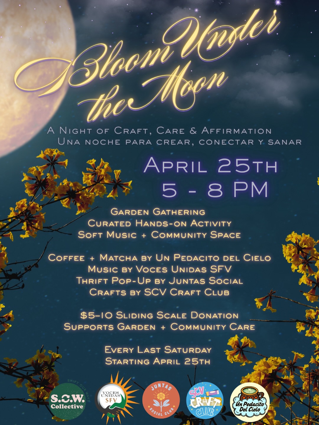 Bloom Under the Moon Craft Night is a relaxing evening filled with creativity and connection in a garden setting. Attendees can enjoy a guided craft activity, soft music, and community care while sipping on coffee or matcha. The event operates on a sliding scale donation, supporting both the garden and community initiatives.