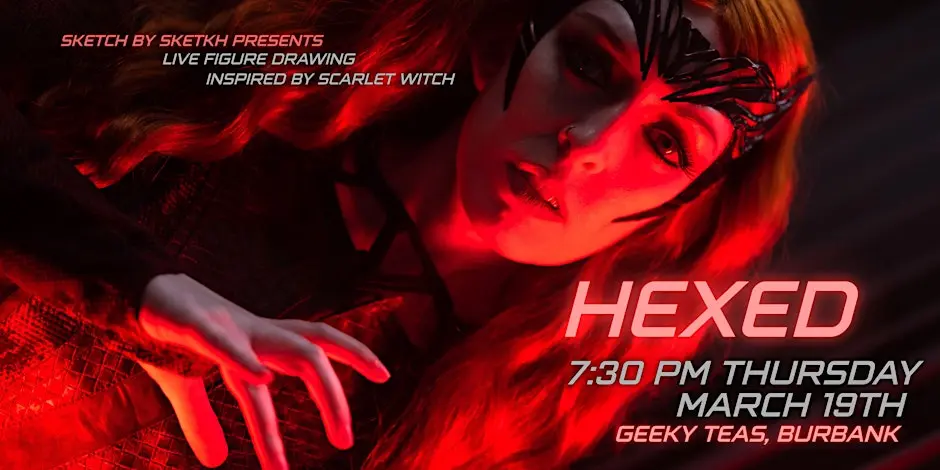This event is a figure drawing night inspired by Scarlet Witch, featuring a live cosplay model. Artists of all skill levels are welcome to sketch along to a themed playlist while enjoying snacks and drinks. Bring your own drawing materials or use those provided, and remember that it's open to all ages, with a recommendation for those 13 and older.