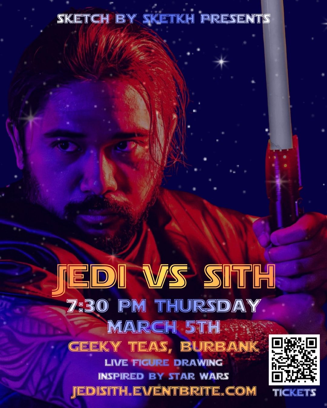 Join us for a fun figure drawing night inspired by Star Wars. You'll get to sketch two live cosplay models as they battle it out as Jedi and Sith. No drawing experience is needed, and all skill levels are welcome. Bring your own pencil and paper, or use what we provide. Arrive early to socialize and grab some snacks and drinks from the store. Itβs a great opportunity to unleash your creativity and connect with fellow art lovers!
