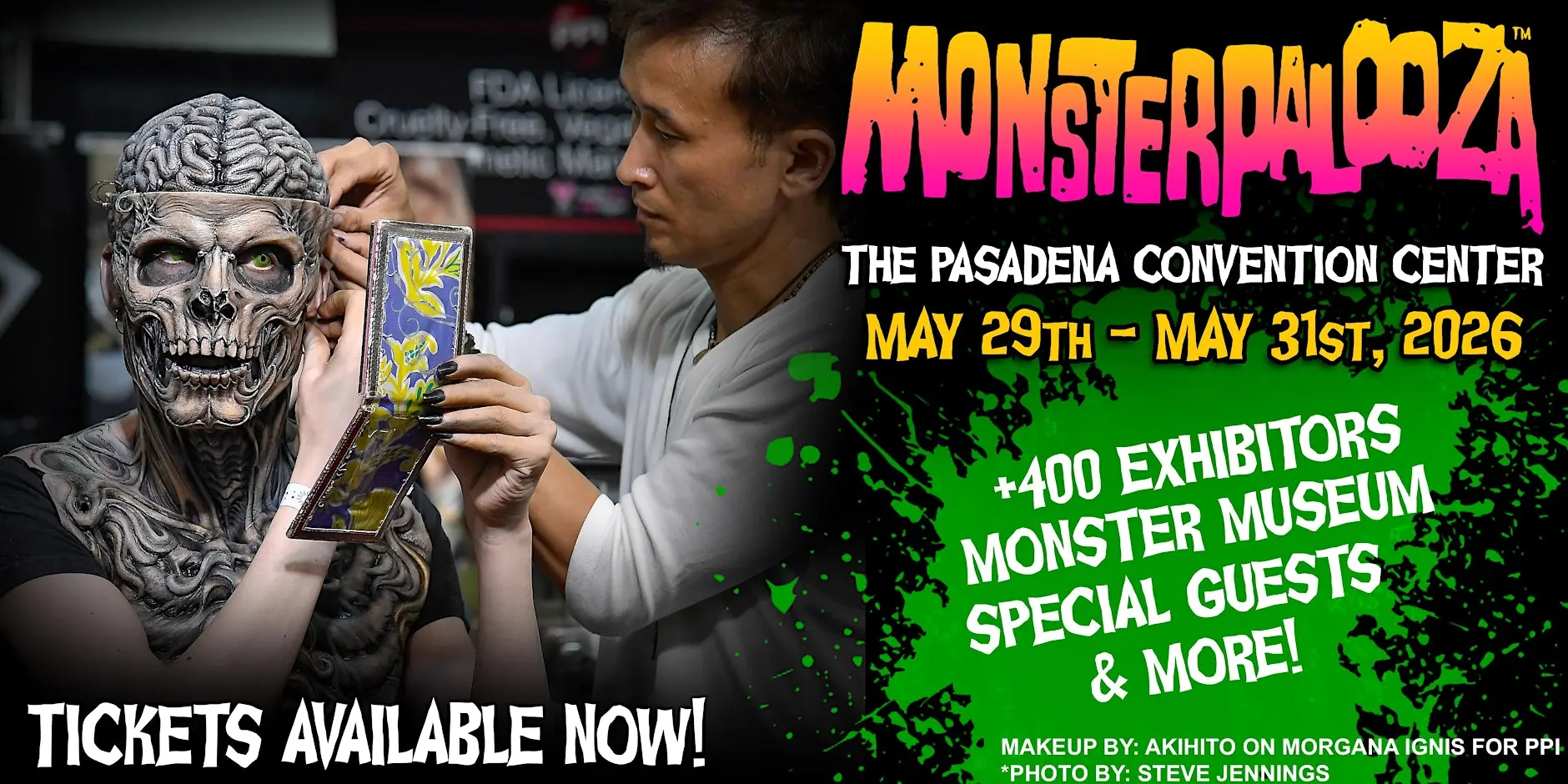 Monsterpalooza is the ultimate celebration of monster art, creature effects, and horror film culture, featuring over 450 exhibitors with costumes, collectibles, and live makeup demos. The Monsterpalooza Museum showcases full-sized creatures, hyper‑realistic sculptures, screen‑used props, and animatronics from beloved genre films. Panels and special guests add extra excitement for horror fans and makeup artists alike.