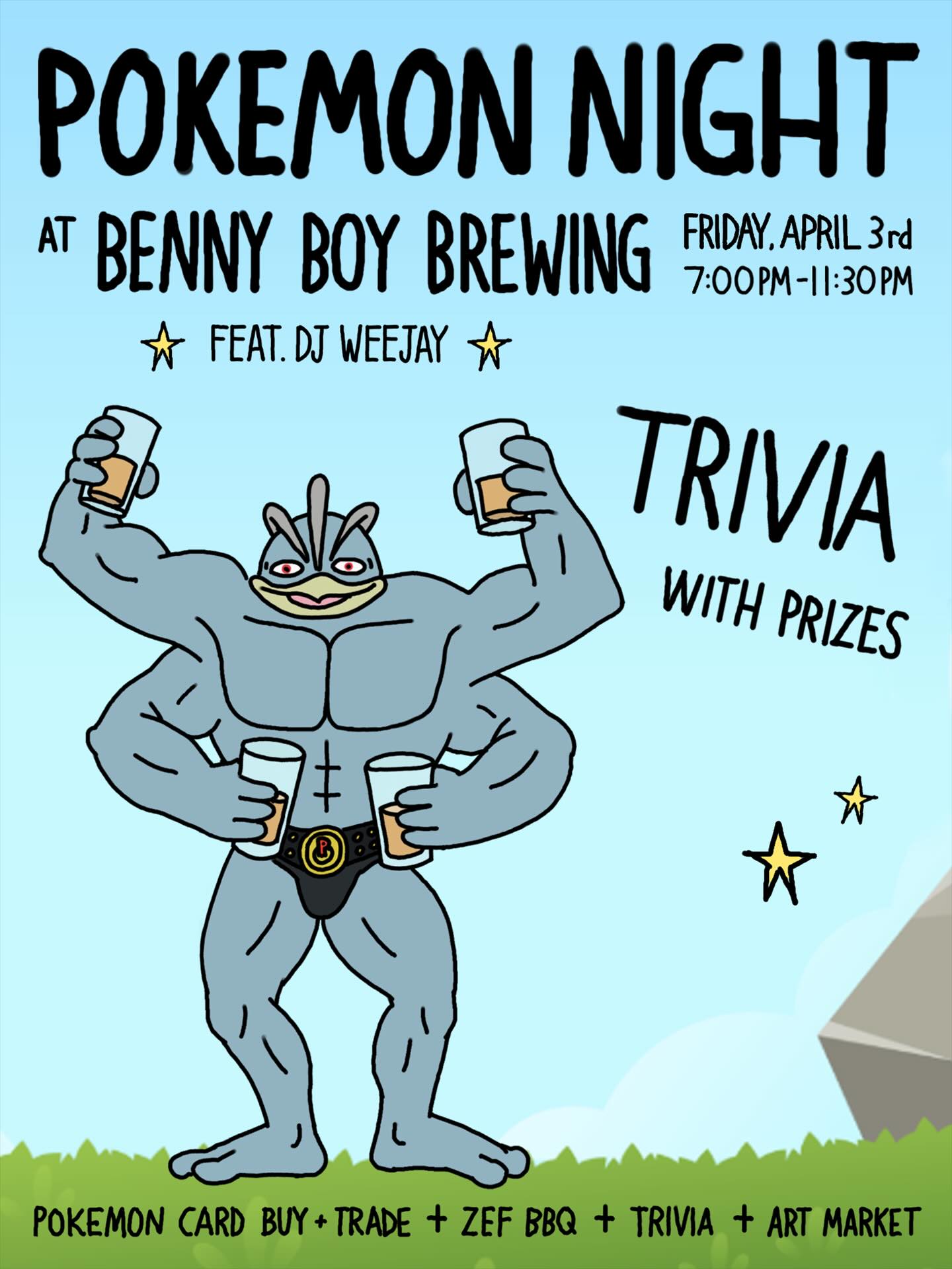 The Pokemon Night Trivia Event features a lively evening filled with great food, card trading, music, and exciting trivia about Pokemon. Attendees can enjoy a special Pokemon-themed menu, live music, and art for sale from various vendors. Trivia sign-ups happen early, and prizes are up for grabs throughout the night.