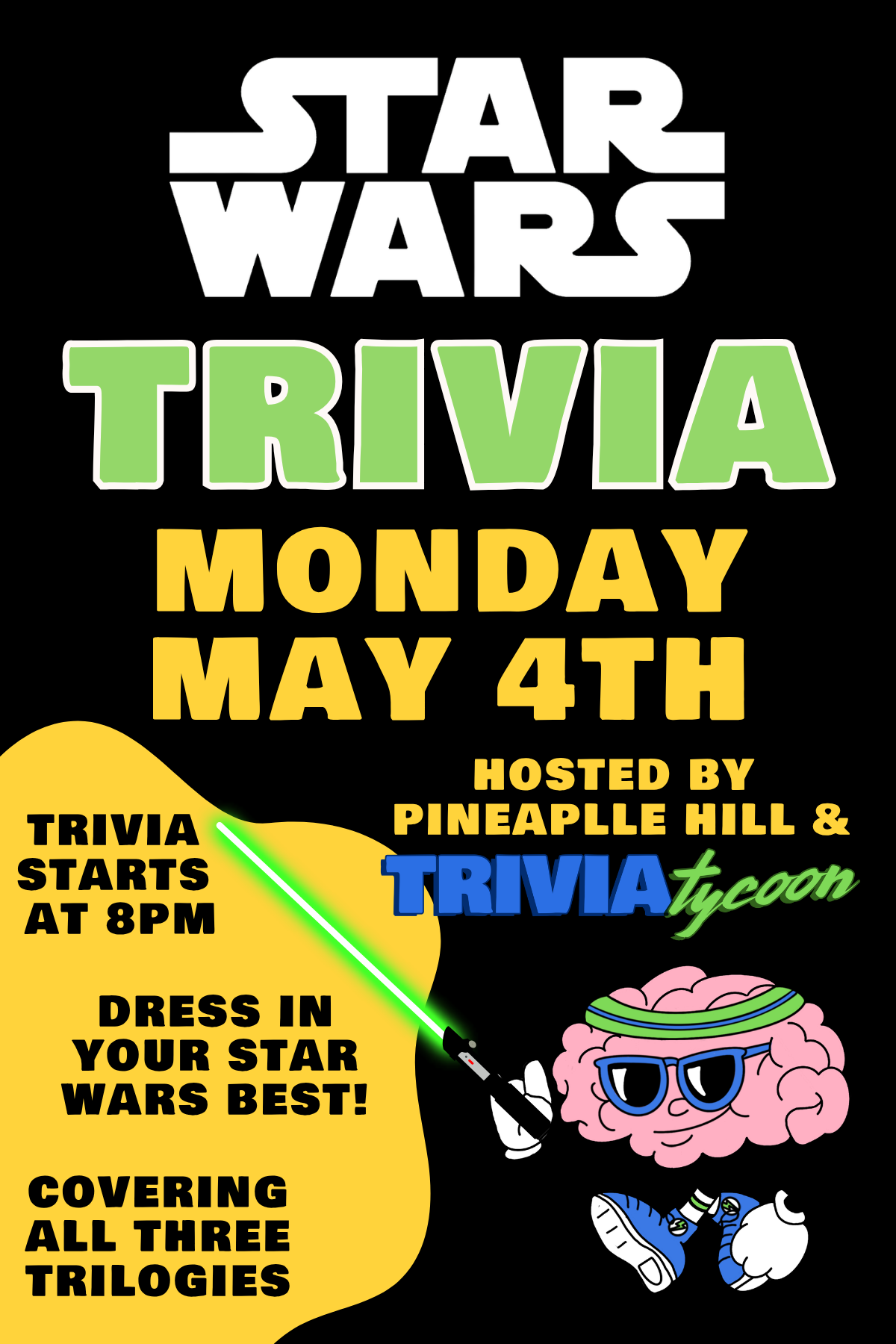 Star Wars fans can look forward to a fun trivia night with questions covering the Original, Prequel, and Sequel trilogies. There might even be prizes for the best costumes, so getting creative could pay off. Enjoy some good food and drinks while testing your Star Wars knowledge with fellow enthusiasts.